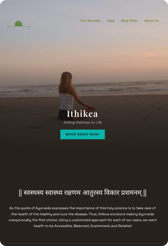 Ithikca Ayurcare embodies the essence of holistic healing through traditional Ayurvedic practices. In my role as their web developer, I meticulously crafted a website that elegantly communicates their dedication to nurturing both body and mind. The site boasts intuitive navigation, facilitating easy access to personalized treatments, meticulously curated diet plans, and bespoke lifestyle guidance. It serves as a sophisticated platform for visitors to seamlessly engage with the brand and access the necessary support.