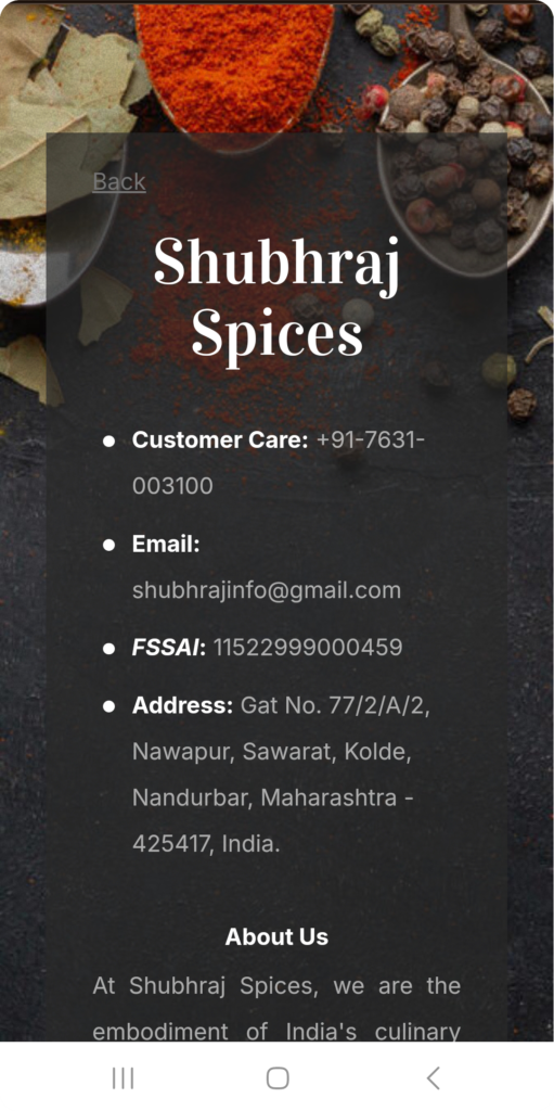 The challenge was to highlight Shubhraj Spices’ authenticity while appealing to modern consumers who value both heritage and convenience. The work included crafting a compelling “About Us” section, clear and enticing product descriptions, and seamless integration of contact and regulatory details. This approach ensured the brand’s story and product value were communicated effectively, strengthening its connection with customers globally.